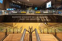 Ruimte scheidt de lichamen, niet de geesten spreuk in het Centraal Station in Rotterdam. Dit werk is onderdeel van de fotocollectie van MS Fotografie. Klik rechts op "Alle werken" om meer werken uit de collectie te zien.