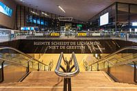 Ruimte scheidt de lichamen, niet de geesten spreuk in het Centraal Station in Rotterdam. Dit werk is onderdeel van de fotocollectie van MS Fotografie. Klik rechts op "Alle werken" om meer werken uit de collectie te zien.