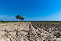 Noord Groningen - geploegde landbouwgrond, wat een ruimte daar. De drie bomen breken het zicht op de vlakke horizon.