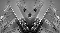 Collage van een modern appartementengebouw aan de Coulee Verte Renée Dumont in de Franse stad Parijs. De vorm vertoont gelijkenis met een ruimteschip
