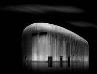 Dit is moderne architectuur in Almere. Binnen het gebouw vind je onder andere een theater. Door het gebouw te isoleren en te bewerking in zwart wit lijkt het enigszins op een ruimteschip