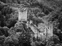 De burchtruïne van de Niederburg in Manderscheid in de Vulkaaneifel, Duitsland.