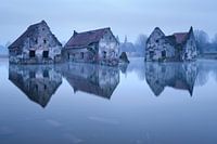 Dit verbluffende kunstwerk "Lost Reflection" vangt de beklemmende schoonheid van een vervallen ruïne die perfect wordt weerspiegeld in het kalme wateroppervlak. De ruïne, ooit een trots gebouw, onthult nu een gebroken gevel. De scheuren en afbrokkelende muren vertellen verhalen van vervlogen tijden. Dit beeld, gemaakt in de rustige uren…