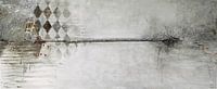 De koning van de ruiten, statig, een abstract schilderij. Zoek de speelkaart in het werk