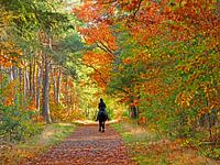 Een heel fraai en natuurlijk sfeerbeeld van de herfst. Een gewenste figurant is hier een ruiter in het midden van dit werk wat daardoor een prachtig geheel vormt! De fijne warme tinten van de herfst en dit bos zullen de sfeer in uw huis of kantoor verhogen.