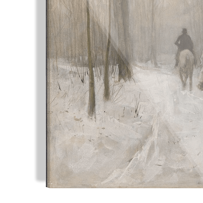 Koop Ruiters in de sneeuw in het Haagse Bos, Anton Mauve als reproductie op canvas, aluminium dibond, (ingelijste) fotoprint, behang en ArtFrame, op maat geprint in Fine-Art kwaliteit.