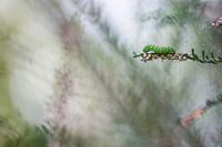 Op een vroege ochtend zat deze groene rups van de roodbont heide-uiltje prachtig op de bloeiaren avn een heidestruikje. Dit is een rups van een nachtvlinder die voor voorkomt op de Veluwe. Deze foto is gemaakt op de Veluwezoom.