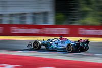 George Russel in actie tijdens de Grand Prix F1 in Hongarije