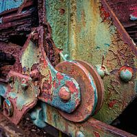 Detail van een verlaten goederenwagon op het station van Hombour in België