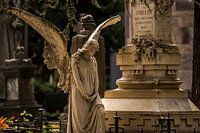 Op deze foto zie je een serene en tijdloze scène op een historische begraafplaats in Milaan. De oude graven, omsloten door verweerde stenen ornamenten, vertellen verhalen van herinneringen en vergankelijkheid. Het zachte licht dat door de bomen valt, creëert een dromerige sfeer van respect en contemplatie. Dit werk is geïnspireerd door de stilte en de krachtige aanwezigheid van geschiedenis op deze plek; het is alsof je de echo van duizenden levens kunt voelen en hun verbinding met het hier en nu.