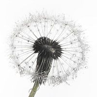Door de vele lijnen van de pluisjes aan de paardenbloem, lijkt het net een grafisch werk. De kleur is wat verbleekt om het geheel rustiger te maken.