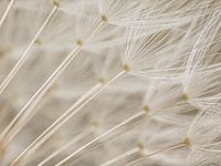 Door de macrofotografie lijken deze kleine pluisjes net paraplu's die in de lucht zweven. De achtergrond is amper waarneembaar, de pluisjes vullen bijna het gehele beeld.