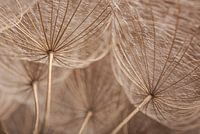 "Rust in de natuur: Hout kleurige pluizenbol van binnenuit" is een macrofoto de pluisjes van een morgenster van schuin onderaf gefotografeerd. (Deze bewerkte) foto heeft zachte hout kleurige tinten / pastel kleuren / wit / goud kleur / champagne kleur/ bruin / beige tinten.