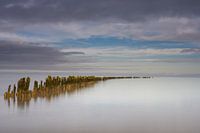 Prachtig rustig weer op het Wad bij Wierum. Door de bewolking is er bijna geen onderscheid meer te zien tussen de Waddenzee en de lucht. Daardoor lijkt het bijna een eindeloos vergezicht. Op de voorgrond van de foto is een golfbreker te zien welke in de Waddenzee lijkt te verdwijnen....