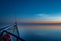 Rust valt over de Waddenzee, de avond op een oude zeilboot gaf deze lichtgevende nachtwolk en een sfeervolle zonsondergang met een gedeelte van de boeg van het schip.