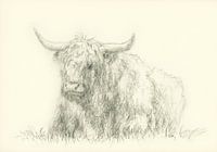 Rustend hoogland vee potloodtekening van Karen Kaspar