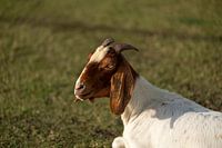 Koop dit portret Rustende Geit in de Zon van Franklin Driessen op canvas, aluminium dibond, (ingelijste) fotoprint, behang en ArtFrame, op maat geprint in Fine-Art kwaliteit.