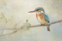 Een kleurrijk digitaal schilderij van een IJsvogeltje rustend op een tak. Het werk geeft een dromerige en klassieke uitstraling aan uw interieur!