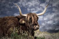 Deze Schotse hooglander lag heel rustig in een weiland te dutten.