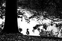 Eenden fotograferen in het Haagse Bos, te Den Haag. De silhouet van deze eend komt goed uit in zwart-wit.