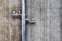 Rustende meeuwen tegen de achterkant van een schuur in Noorwegen.