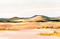 Dit prachtige ontwerp toont een rustgevend landschap met glooiende heuvels en uitgestrekte velden. De zachte kleuren en minimalistische stijl maken het een perfecte aanvulling voor elk interieur. Het warme palet van beige, geel en groen brengt een natuurlijke sfeer in huis en straalt een serene rust uit. Ideaal voor de woonkamer of eetkamer, dit schilderij creëert een gevoel van openheid en ruimte. Laat je inspireren door de eenvoudige schoonheid van de natuur en breng een vleugje kalmte in je leefomgeving. Perfect voor liefhebbers van moderne en minimalistische decoratie.