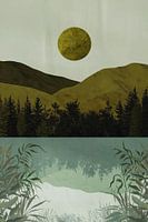 Ontsnap naar een serene wereld met dit minimalistische ontwerp van natuur. Het toont een rustgevende scène met groene heuvels, een glinsterende zon, en een stille waterreflectie. Perfect voor het creëren van een kalme sfeer in elke kamer, of het nu een slaapkamer of een eetkamer is. De subtiele kleuren en strakke lijnen maken dit stuk…