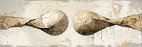 Rustgevende Kunst | Harmonieuze Ronde Vormen - Dit abstracte schilderij presenteert twee grote, ronde, aaneengesloten vormen, uitgevoerd in aardse tinten zoals beige, bruin en wit, wat een rustgevend en harmonieus gevoel geeft door de zachte kleurovergangen en de subtiele textuur.
