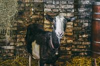Perfect voor liefhebbers van landelijke fotografie en rustgevende natuurscènes, deze afbeelding is een ideale toevoeging aan kunstcollecties, galerieën of als een rustgevend decoratief stuk in een huiselijke omgeving. De serene en kalme sfeer van de geit in haar stal creëert een beeld dat zowel inspirerend als rustgevend is.