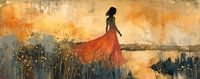 Rustic Flame Dance - abstract vrouw oranje jurk