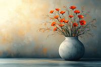 Rustic Grace Echoes - Modern stilleven met levendige bloemen in een rustieke vaas