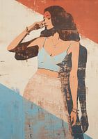 Details: vrouw, industrieel, urban art, roestbruin, blauw, beige, elegantie, serene, abstract, modern