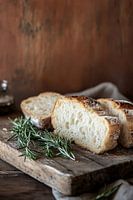 Een sfeervol rustiek ontwerp met vers gebakken brood en rozemarijntakjes, perfect gepresenteerd op een houten plank. Deze afbeelding straalt warmte en ambachtelijkheid uit en past perfect bij een landelijke keuken of eetkamer. Ideaal voor culinaire liefhebbers en mensen die een natuurlijke en huiselijke sfeer willen creëren in hun…