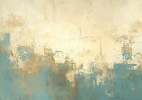 Rustieke Abstracte Kleuren - Dit is een abstract schilderij met een mix van aardetinten, beige en een subtiele blauwe ondertoon, die samen een rustige en sfeervolle uitstraling creëert.