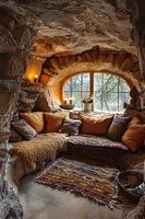 Koop de foto Rustieke en Gezellige Grotwoning met Uitzicht van Art & Soul Creations als print op canvas, aluminium dibond, (ingelijste) fotoprint, behang en ArtFrame. Voor jou op maat geprint in Fine-Art kwaliteit.