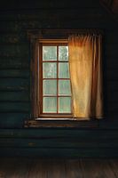 Dit ontwerp toont een rustieke en sfeervolle vensterpartij in een traditionele houten cabine. Het zachte licht dat door het raam valt, benadrukt de verweerde gordijnen en het natuurlijke houtwerk, wat een warme en nostalgische sfeer creëert. Perfect voor een serene, landelijke uitstraling in een ruimte of als inspiratie voor decoratieve…