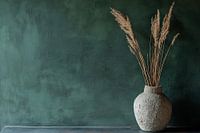 Dit prachtige ontwerp straalt een gevoel van rust en balans uit door de combinatie van een organisch gevormde vaas en een subtiel groen getextureerde achtergrond. Het simpele, maar doordachte ontwerp past perfect in moderne en minimalistische interieurs, waarbij de natuurlijke tinten en materialen een serene sfeer creëren. Ideaal voor een woonkamer of eetkamer, dit beeld nodigt uit tot reflectie en harmonie in elk ruimteontwerp. De vaas, met zijn robuuste textuur en ingetogen kleur, vormt een prachtig contrast met de fragiele riettakken, waardoor een subtiele spanning ontstaat die de esthetiek versterkt. Een perfecte keuze voor liefhebbers van eenvoud en natuur.