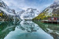 Het meer van Braies ligt in de prachtige Dolomieten en is een populaire excursiebestemming en fotomotief. Ik vond deze ochtendsfeer op een koude herfstdag. De eerste sneeuw heeft de bergen al bereikt.