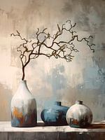 Rustig en tijdloos Stilleven. Krulhazelaar op aardewerk vaas van Studio Pieternel