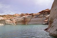 Het is erg rustig in dit bredere deel van Antelope Canyon, de prachtige aftakking van Lake Powell in de buurt van de stad Page in Arizona, VS. Nogal wat bewolking, maar over het algemeen een erg aangename tocht tot nu toe.