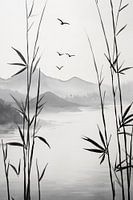 Koop dit landschapskunstwerk Rustig landschap met bamboe en vogels van Poster Art Shop op canvas, aluminium dibond, (ingelijste) fotoprint, behang en ArtFrame, op maat geprint in Fine-Art kwaliteit.