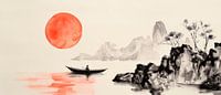 Rustig landschap met rode zon van Poster Art Shop