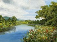 Vergeleken met de twee volgende foto's heeft deze compositie gemeen dat een centrale rivier op de voorgrond met een wijde bocht naar links naar achteren loopt.