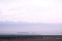 • Foto van een mistig Nederlands landschap in pasteltinten