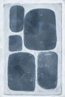 "Rustige Omarming" is een werk waarin vloeiende, organische vormen samenkomen binnen heldere, omlijnde structuren. De combinatie van zachte, afgeronde vormen met strakke lijnen creëert een harmonieuze balans die uitnodigt tot reflectie en rust. Deze compositie biedt een veilig en comfortabel gevoel, alsof de vormen beschut worden binnen hun eigen ruimte.