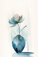 Een minimalistische aquarelcompositie met een enkele tere bloem in een zachtblauwe vaas. Zachte penseelstreken, subtiele verlopen en veel wit creëren een gevoel van rust, evenwicht en verfijnde eenvoud. Dit kunstwerk roept stilte en contemplatie op, waardoor het ideaal is voor moderne interieurs, Scandinavische inrichting en serene…