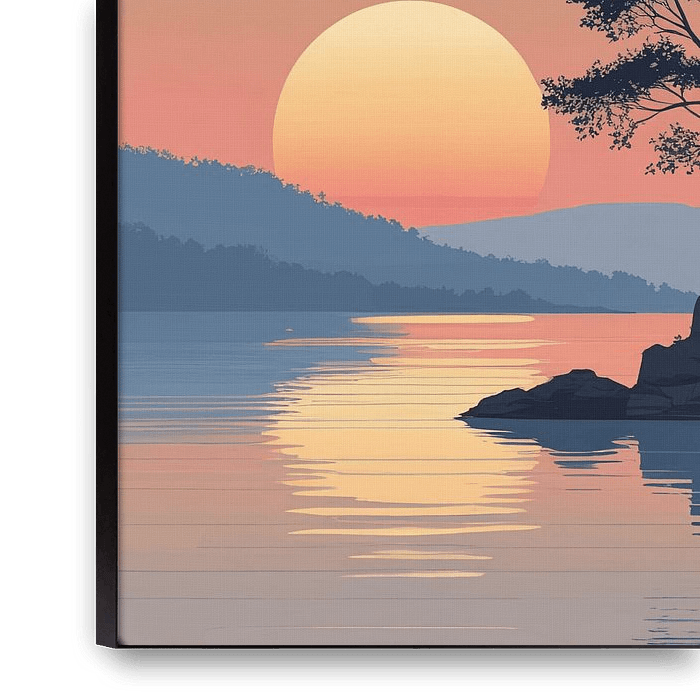 Koop de illustratie Rustige zonsondergang Reflectie van Giandra Safaraz als print op canvas, aluminium dibond, (ingelijste) fotoprint, behang en ArtFrame. Voor jou op maat geprint in Fine-Art kwaliteit.
