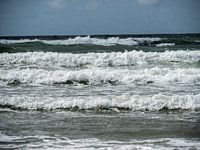 De wind bij de kust maakte de golven van de zee iet meer onstuimig dan normaal. Mooie balans tussen de rijen golven.
