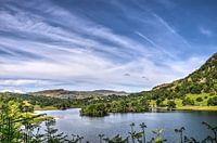 De meren in het Engelse Lake District hebben, opvallend genoeg, namen die meestal niet eindigen op -lake, maar op -mere, -water of -tarn. We zien hier, onder een schilderachtige zomerlucht en omgeven door groene hellingen, Rydal Water, gelegen tussen Windermere en Grasmere.