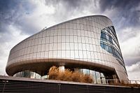 Moderne architectuur met veel glas en aluminium panelen toegepast in het hoofdkantoor van SABIC in Sittard.